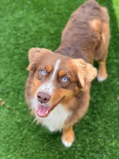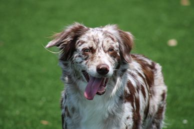 ANASIA IS A RED MERLE ASDR REGISTERED AND IS 40 LBS. HER PUPPIES TEND TO BE BIGGER MINIS.